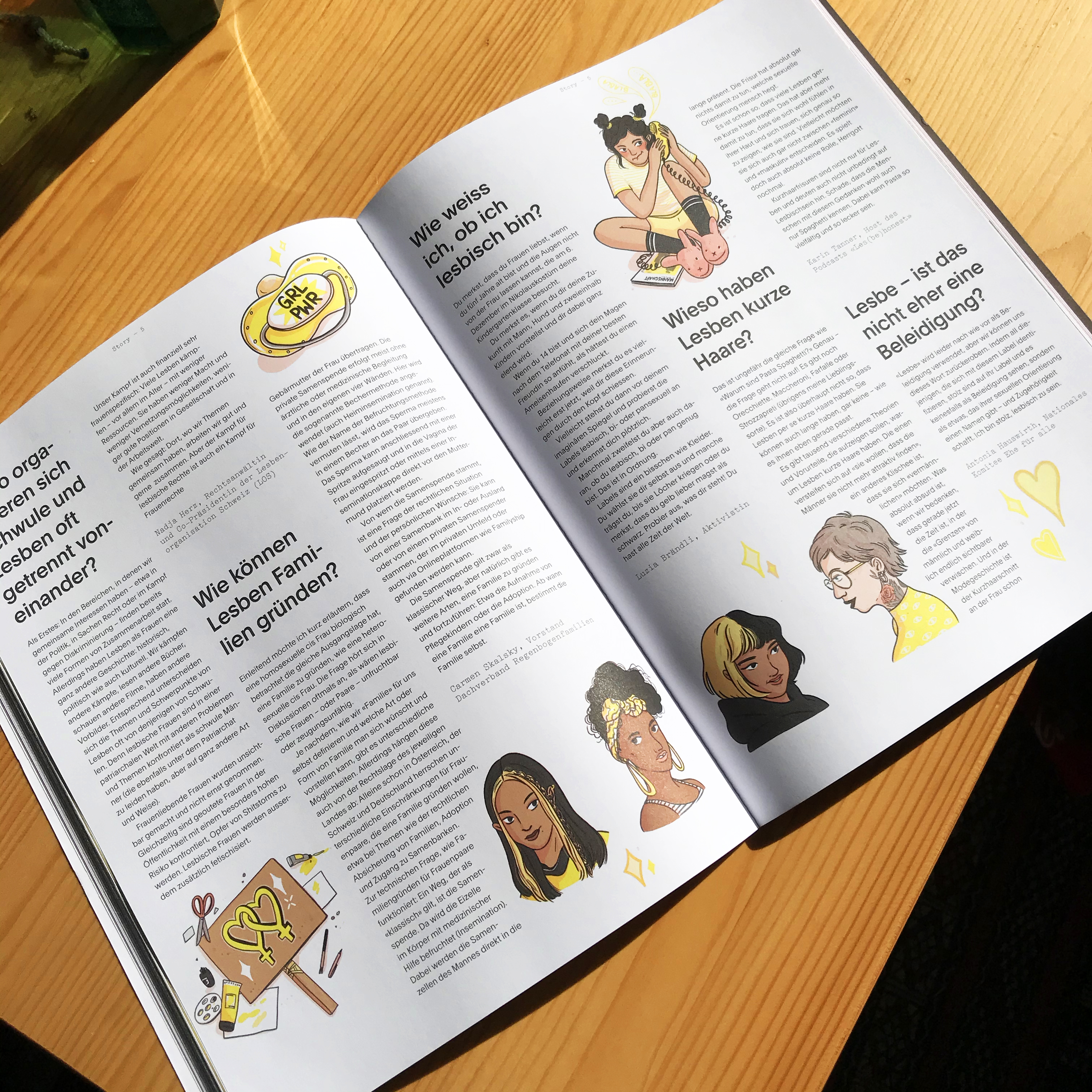 7 Vignetten-Illustrationen für das Lesben FAQ (Autorin: